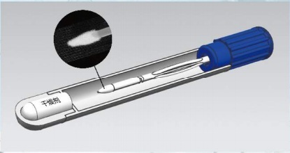 整個拭子包裝在透明塑料管中,避免生物污染。