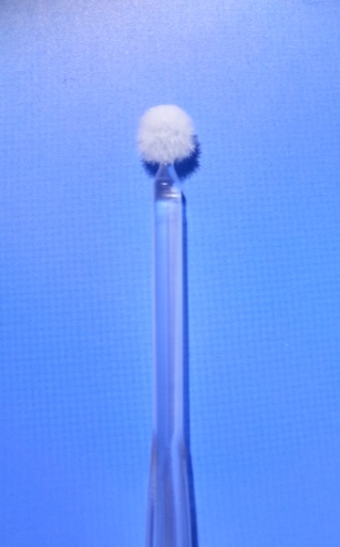 本公司生產的DNA提取球形拭子是一種特別適用于96孔板微量提取的提取工具,采用尼龍纖維技術制作而成,前端涂有以垂直方式固定的尼龍短纖維,使得整個采集拭子采集區域內部無吸收孔,DNA細胞不會分散滯留纖維之中,有利于更快更高效的洗脫。拭子頭部小,使用時將拭子頭插入96孔板小孔中,稍用力即可折斷,將拭子頭整體滯留于小孔中進行后續操作,不需人工剪碎,操作簡單,耗時短,可以大大提高工作效率,特別是避免樣品間的交叉污染的問題,使檢測準確率高。拭子懸空放置于管體內,防止檢材因包裝粘附而受到污染。管底配有特殊濾膜,保證管內外空氣通透性,防止檢材霉變,同時濾去外部空氣中可能影響檢材質量的小顆粒雜質,便于樣品長期儲存。